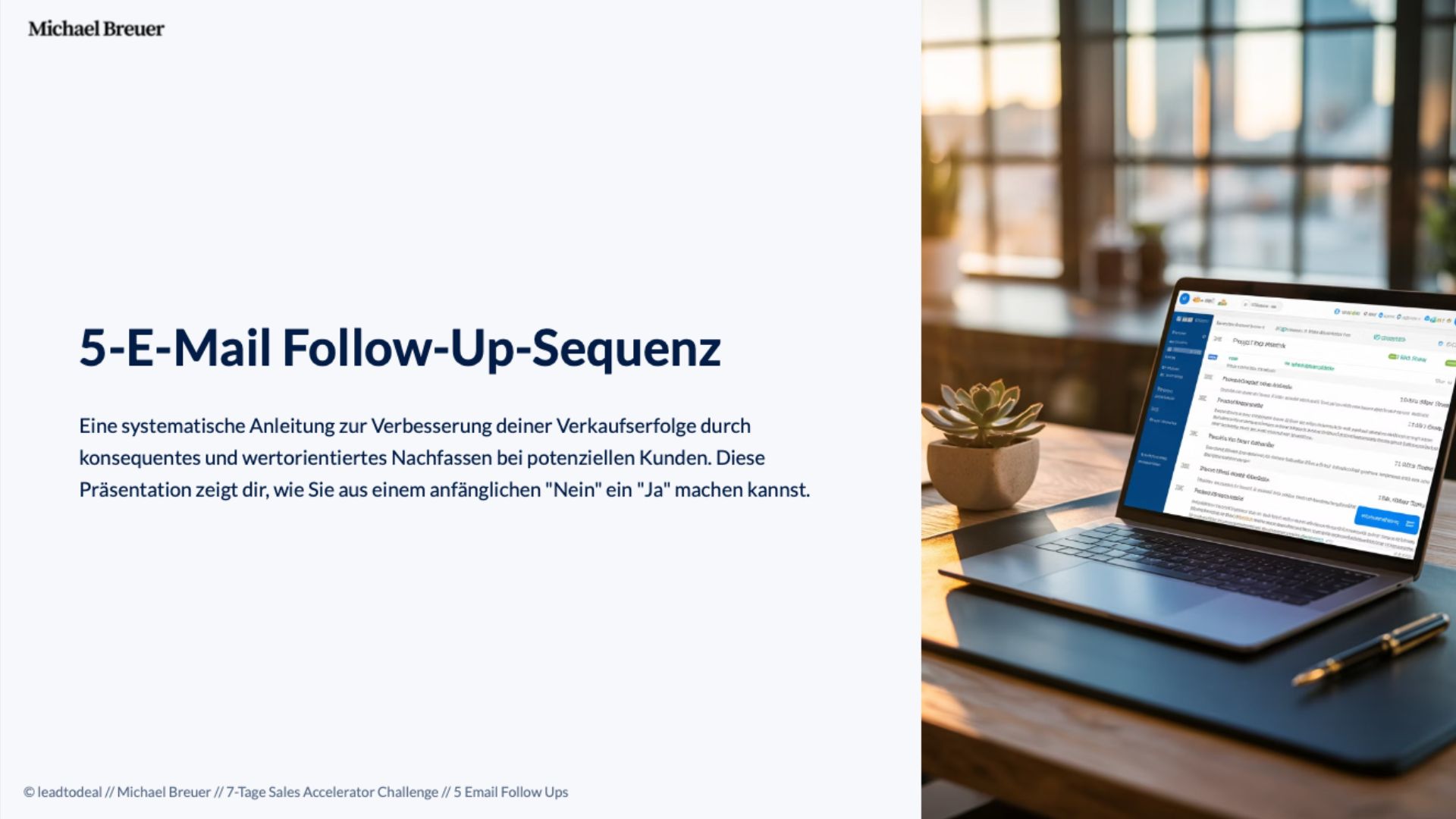Das Besondere: Du bekommst nicht nur Videos, sondern über 90 Seiten Workbooks, 50+ Email-Templates, ein Excel Master-Tool und einen 90-Tage Implementierungsplan. Alles was du brauchst, um sofort loszulegen und messbare Ergebnisse zu erzielen.